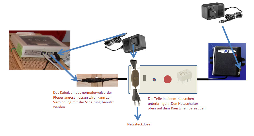 Schaltung, um zu verhindern, dass bei Ein- und Ausschalten des Epi-Care ein Alarm gesendet wird.
